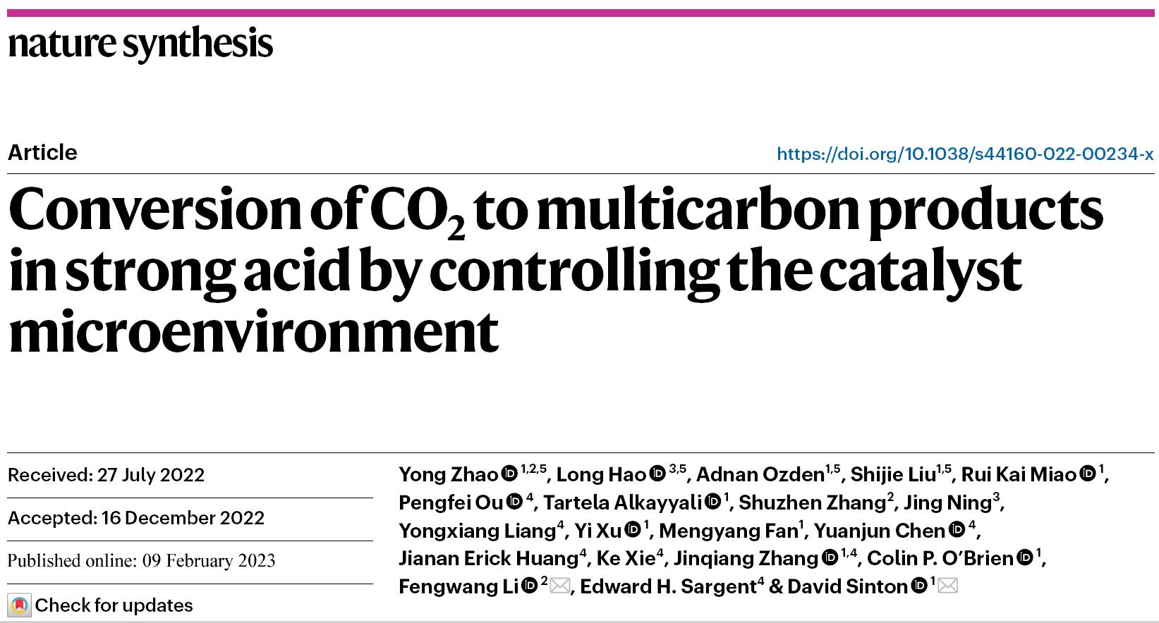 课题组和多伦多大学以及悉尼大学合作发表Nature Synthesis一篇