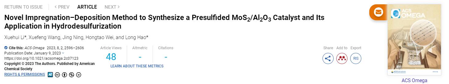题目:Novel Impregnation–Deposition Method to Synthesize a Presulfided MoS2/Al2O3 Catalyst and Its Application in Hydrodesulfurization