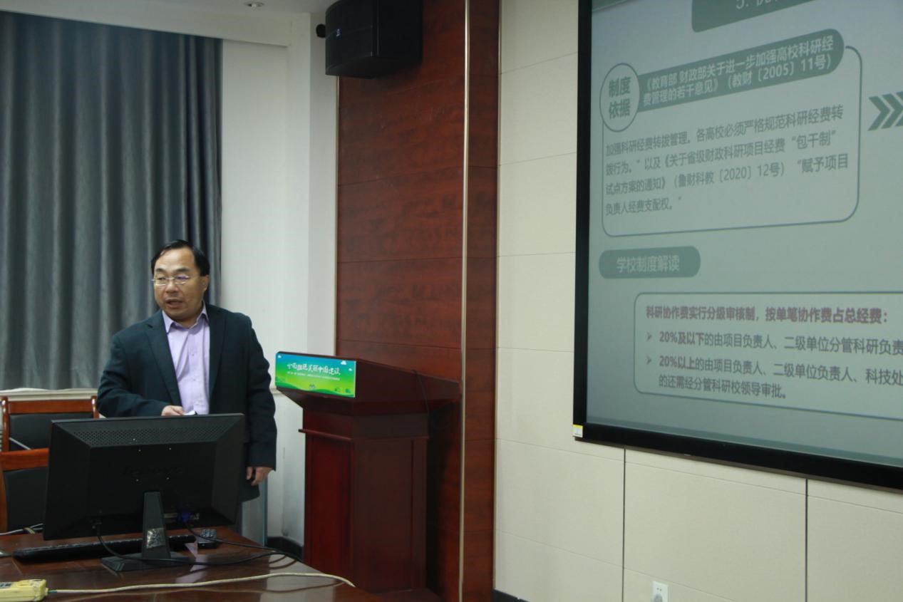 在分析公司横向课题现状时,平涛指出了服务企业主动性不足、科研价值观未全面转换、技术转移行业人才短缺等问题。为此,他提出了四个“转变”的驱动力,为公司及公司向“新”提“质”之路提供参考,这四个转变分别为:一是由“量变”向“质变”转变,坚持重点突破,以高质量科技创新开创新格局;二是由“结果”向“过程”转变,树立以创新质量、绩效、贡献为核心的科研评价导向,推动科技成果高质量供给;三是由“内生”向“外需”转变,坚持问题导向、需求导向和服务导向,实现科研供给侧和产业需求侧紧密精准对接;四是由“个体”向“团队”转变,创新政策体系,打造团队,培育“大师”,形成科技创新活力。在自由交流和提问环节,参会教师围绕项目经费、考核机制、成果转化等方面进行交流和提问,平涛结合相关政策,耐心解答了参会教师的疑惑,为大家提供宝贵的建议和指导。