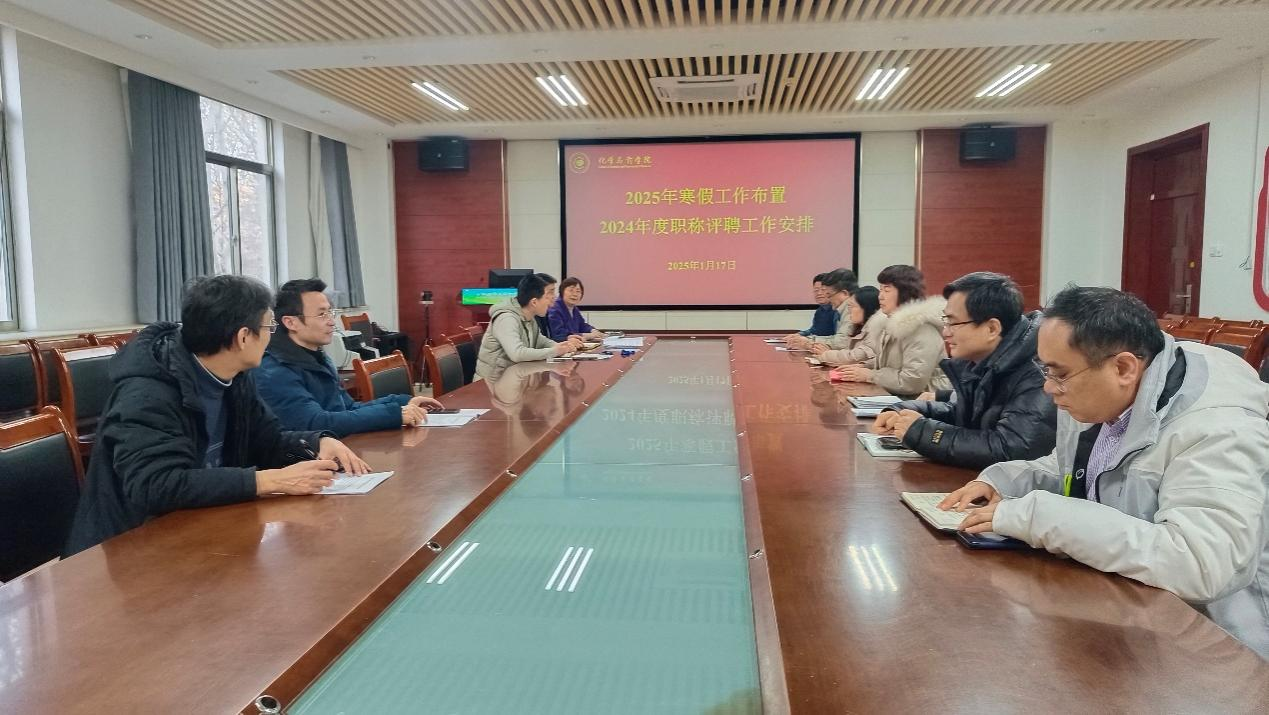 随后,针对本次寒假工作的安排,龚良玉提出八点工作部署:第一,要及时完成试卷评阅工作,按时提交成绩,做好试卷装订及档案整理工作;第二,以高标准、严要求为目标做好制药工程认证材料,做好应化、化工艺等认证申请专业教学档案整理工作和申请书准备;第三,要鼓励员工充分利用假期时间开展科学研究,积极申报国家基金;第四,要重视实验室建设与管理,谨记安全第一的原则,进一步推进实验室安全教育与管理;第五,要依据新修订的2024版人才培养方案,进一步修订6个本科专业的课程教学大纲,并修订完善化学一级学科硕士点和材料与化工专业学位硕士点人才培养方案,完成2个硕士点的课程教学大纲;第六,做好调研指标设定,开展“十五五”规划预研工作;第七,要争取调动资源补齐短板,启动博士点申报工作;第八,采取多种形式开展走访工作,加强与员工、与企业的联系,做好值班代班工作。