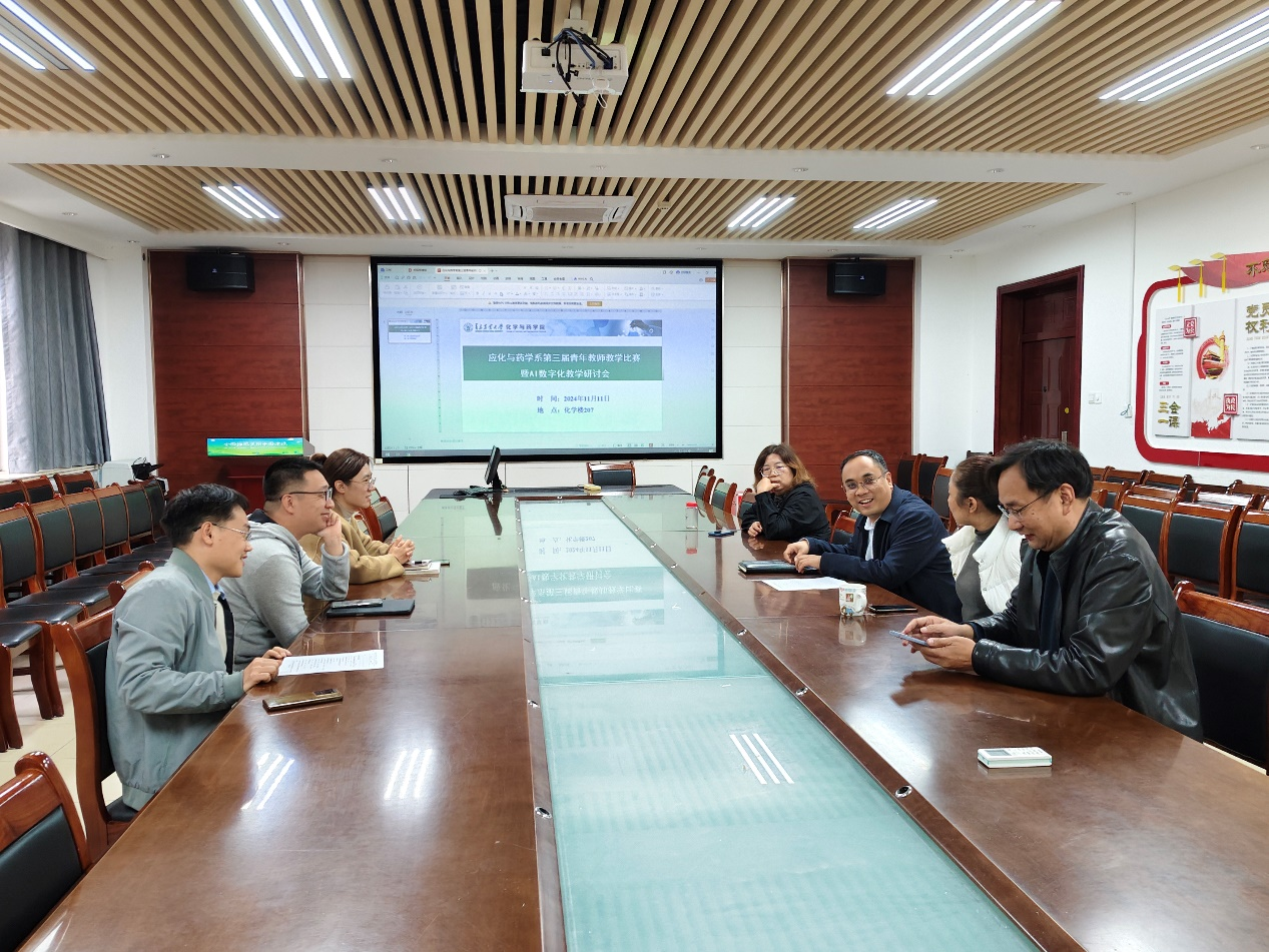 11月11日下午,化公司药公司应化与药学系在院会议室举办第三届青年教师教学比赛暨AI数字化教学研讨会,本次活动由系副主任孔祥平主持,全体教师参加。
