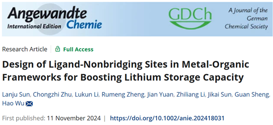 2024年11月11日,bw西汉姆联孙兰菊教授在国际著名期刊Angewandte Chemie International Edition在线刊登了最新研究成果“Design of Ligand‐Nonbridging Sites in Metal‐Organic Frameworks for Boosting Lithium Storage Capacity”(配体非桥接位点设计助力MOFs提升储锂容量)。