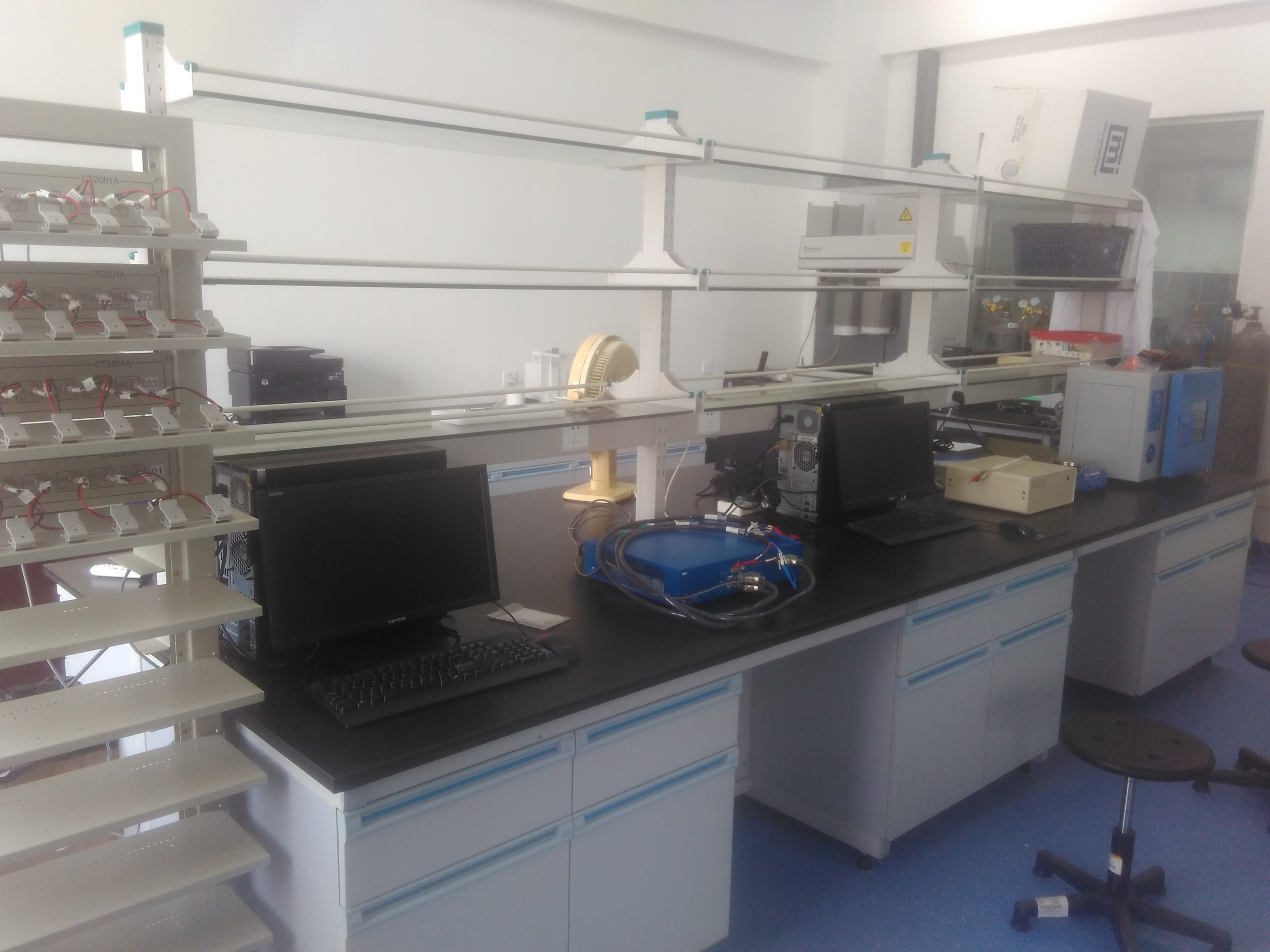 - 其他仪器:立式箱式炉、台式高速离心机、旋转蒸发仪、低温冷却循环泵、鼓风干燥烘箱、 程序控温鼓风烘箱、真空烘箱、超声波清洗仪、小型电动扣式电池封装机、液压扣式电池封装/拆卸机、微型震动球磨机、扣式电池切片机、手动粉末压片机、水焊机、万分之一天平、千分之一天平、百分之一天平、加热控温搅拌器(大龙、长城)、真空油泵、小型隔膜真空泵、小型紫外分析仪(有机合成点板)、Thinkpad工作站、联想电脑、冰箱、切纸机等