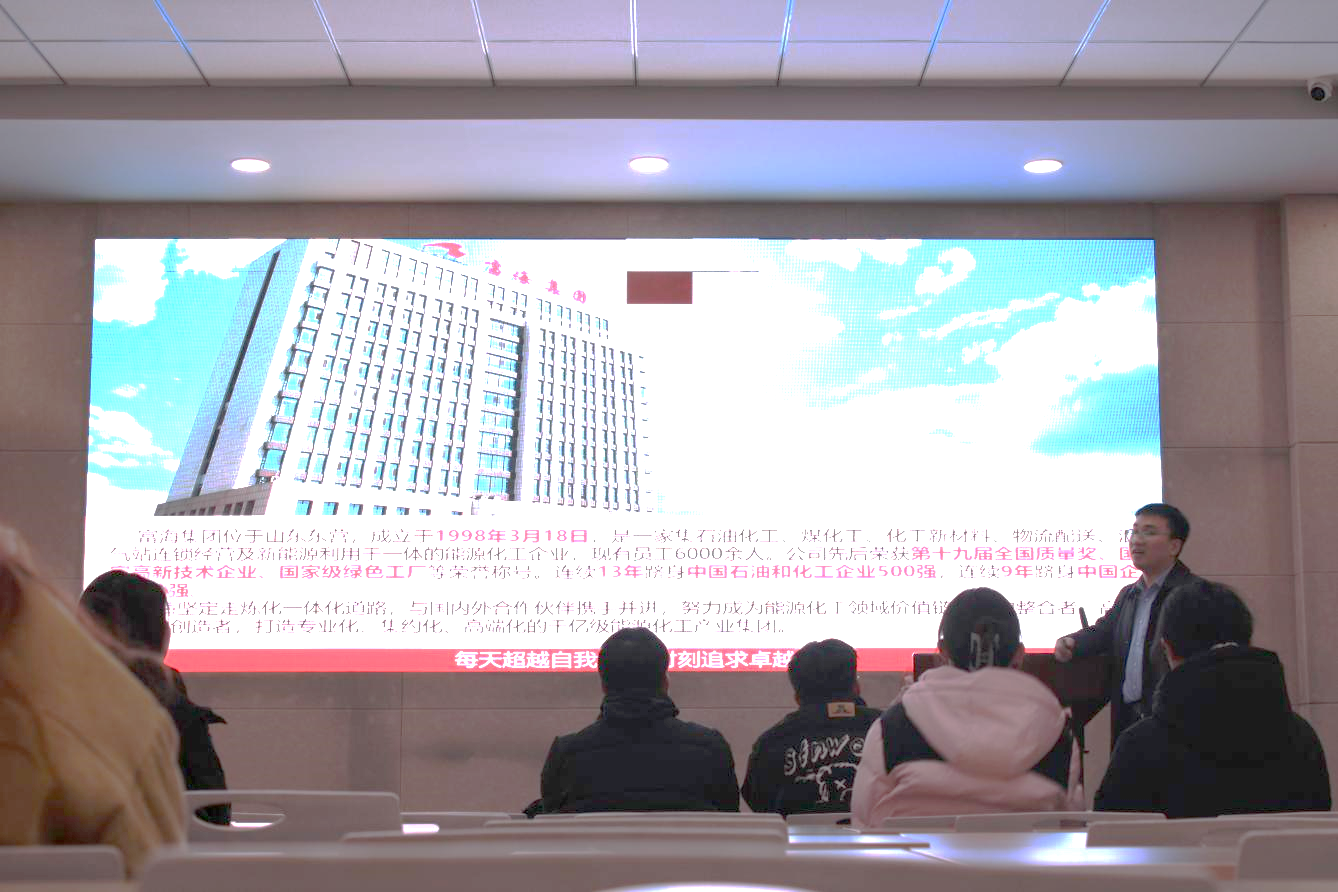 宣讲围绕“奔富山海,无限热爱”为主题,分别对城市建设、企业文化、发展理念、研发队伍、薪金待遇等多个方面作出详细讲解:一是东营市的环境优美,美食文化丰富,人均收入较高,房价相对较低,是一座宜居城市;二是企业实力雄厚,有着明确的战略规划,企业文化卓越;三是企业员工待遇福利优厚,员工选拔重视人品,高度重视对人才的培养和引进;四是企业有着较强社会责任感,这不仅体现了企业的社会形象,也增强了员工的归属感和荣誉感。最后,宣讲负责人收取了在场毕业生的简历,并进行现场面试,为毕业生提供了直接与企业接触的机会。