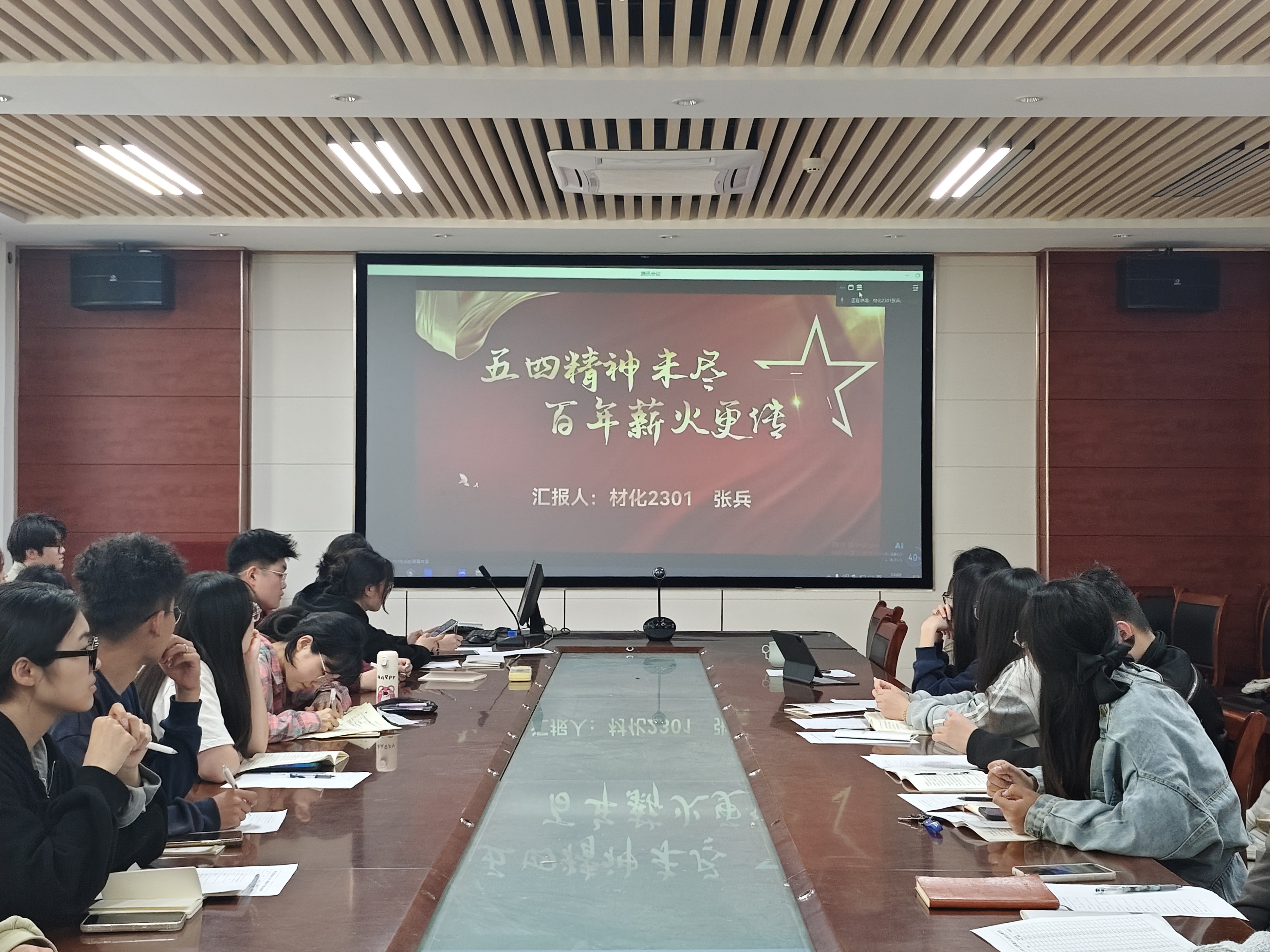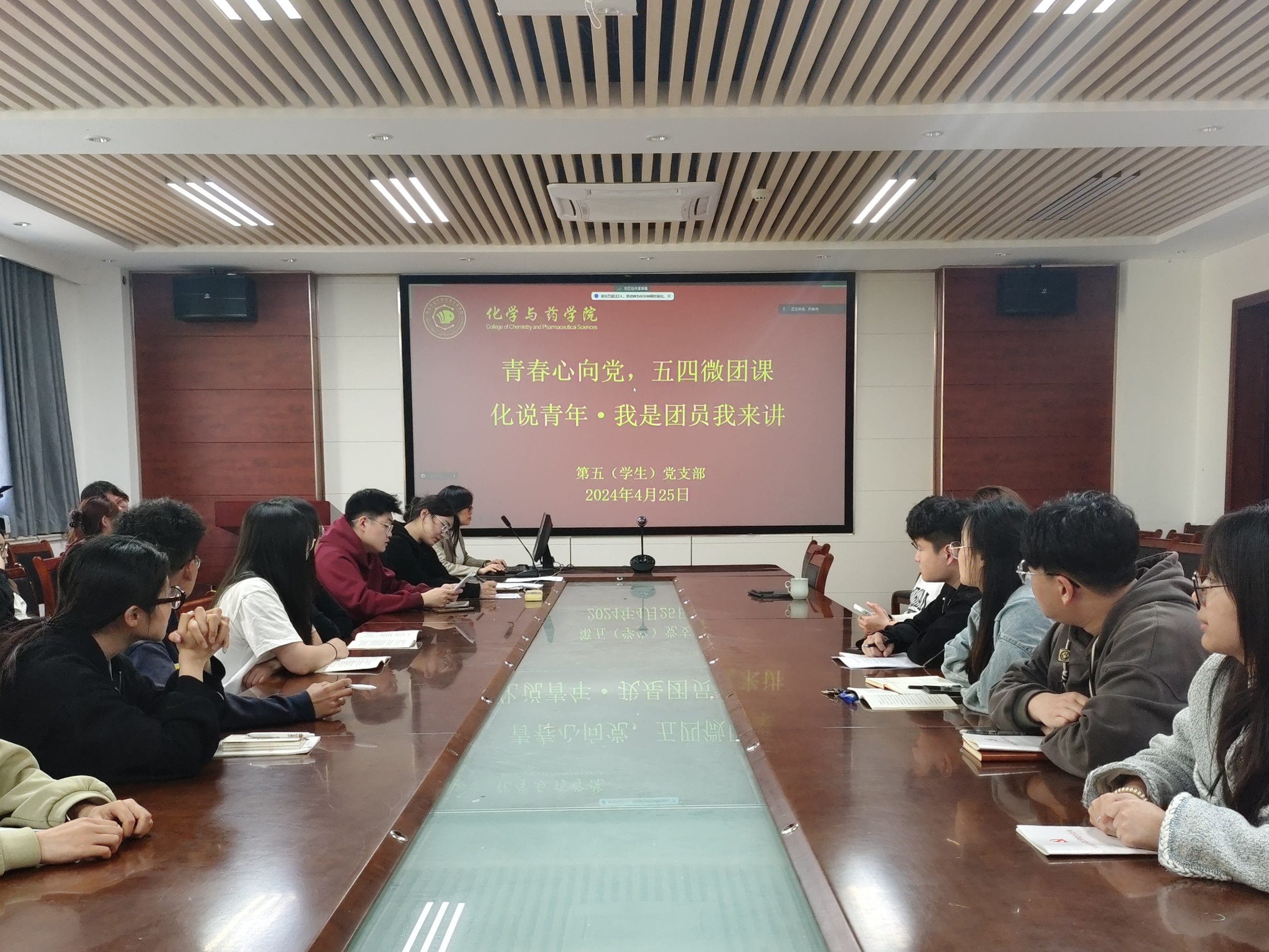 传五四薪火,展青春之姿。正值五四青年节到来之际,为传承和发扬五四精神,激发爱党爱国精神,引导员工树立正确价值观,同时做好党建带团建、团建促党建工作,4月25日,公司第五(员工)党支部于化学楼会议室开展青春心向党之化说青年·我是团员我来讲--五四微团课擂台赛,活动由第五(员工)党支部书记黄海红主持,来自材料化学专业、功能材料专业、化学工程与工艺专业的22级、23级团员代表参加。