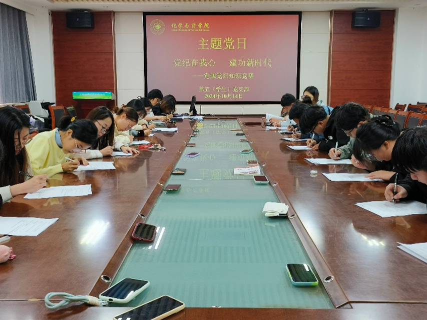 青春心向党,党纪在我心。10月14日,公司第五(员工)党支部于化学楼207开展“党纪在我心,建功新时代”党规党纪知识竞赛主题党日活动,活动由党支部书记黄海红主持,第五(员工)党支部全体成员参与。