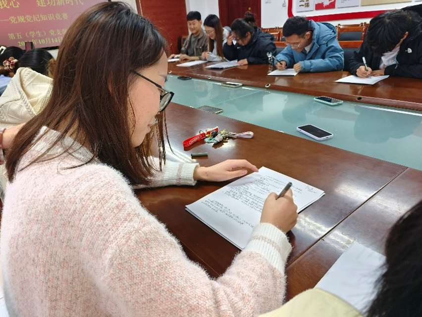 本次活动旨在提升党支部成员的纪律素养,深化对党规党纪的理解和把握,推动党规党纪主题教育建设纵深发展,比赛设置了选择题、填空题、问答题,既有对党规党纪基础知识的考察,又有对实际问题的应用。活动现场气氛热烈,党支部成员们屏气凝神,奋笔疾书,展现了第五(员工)党支部成员们的良好风貌和扎实基础。