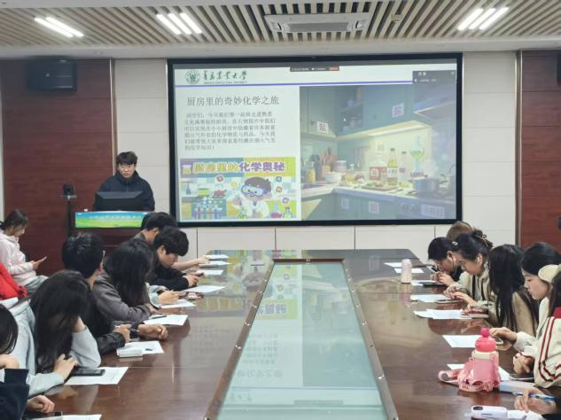 大赛自2025年4月启动,分为初赛、复赛和决赛三个阶段。初赛由各班级自行组织,推选优秀选手进入复赛;复赛于5月11日在化学楼207举行,选手们围绕主题,通过趣味实验、案例分析等形式,生动讲解化学原理。评委从科学性、趣味性和表达力三个维度进行评分,最终10名选手脱颖而出,晋级决赛。