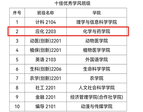 应用化学专业 2203 班以严谨笃学的班风获评“十佳优秀学风班级”。班级成员相互激励,共同进步,形成了浓厚的学习氛围,以扎实的专业成绩和出色的实践能力,为公司树立起学风建设的标杆。