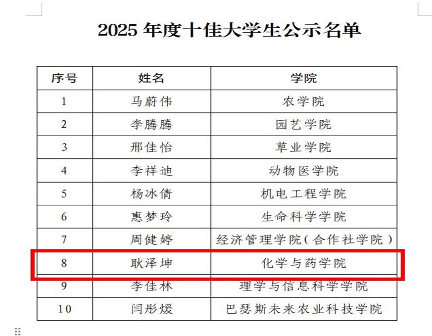 耿泽坤以优异的综合素质,在科技创新竞赛中屡获佳绩的突出表现荣膺 “十佳老员工” 荣誉称号。他用创新思维和实干精神取得亮眼成绩,在学习、科研与社会实践中全面发展,充分展现出新时代老员工的卓越风采。