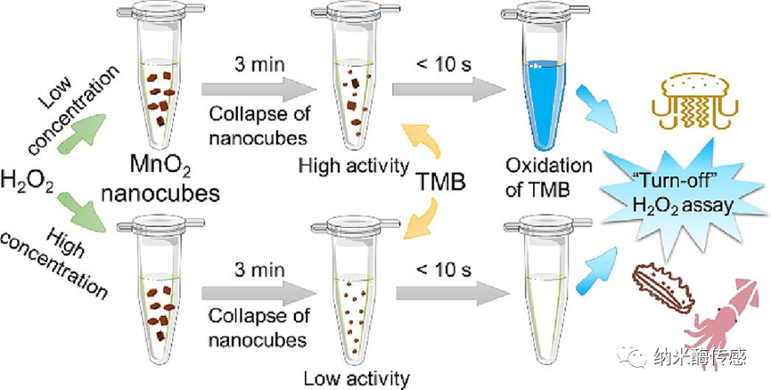图1.基于MnO2纳米立方体turn-off型H2O2检测示意图。(图片来源:Food Chemistry)