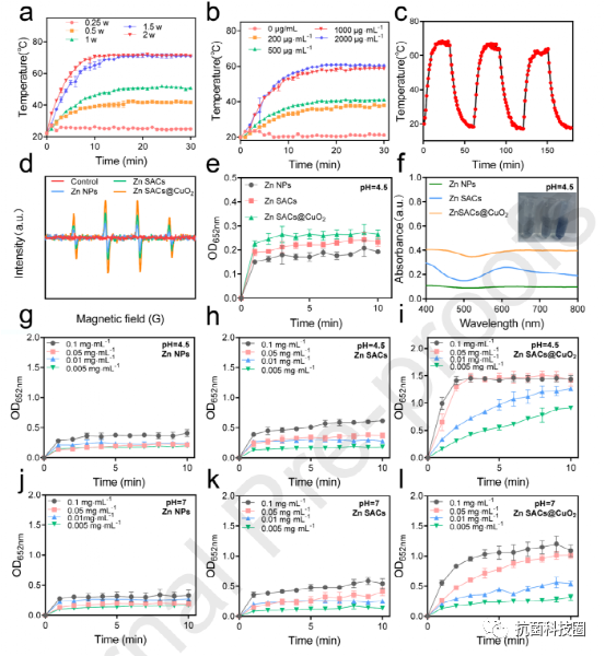 总之,在本文中作者通过将 MOF 衍生的 Zn SACs 与 CuO2 进行修饰,制备了近红外响应的 Zn SACs@CuO2 杂化纳米酶,用于 PTT/CDT 协同抗菌治疗。
