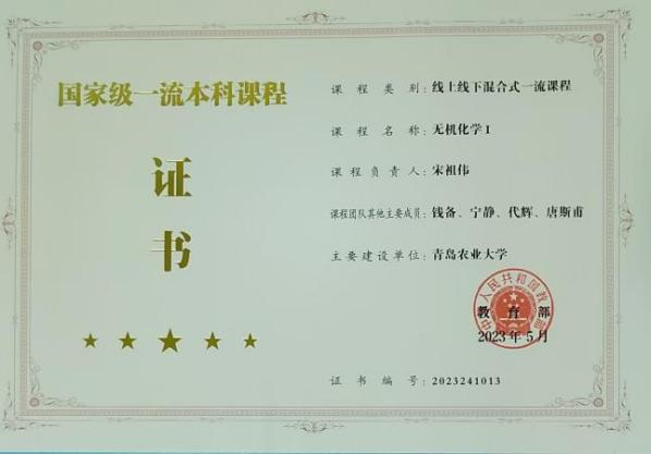 专业建设成效显著。应用化学专业为国家级一流本科专业建设点,制药工程、化学工程与工艺和材料化学专业先后入选山东省一流本科专业建设点。近年来,公司主持山东省省级教学改革研究课题12项,地厅级教学改革研究项目20余项;获山东省高等公司产品成果一等、二等奖共3项,青岛市教育科研优秀成果二等奖1项;主编省部级规划教材10余部。获批国家级一流本科课程1门,省级一流本科课程6门。化学系列课程教学团队、应用化学专业教学团队先后获批山东省教学团队,无机化学教研室入选山东省首批示范性基层教学组织。