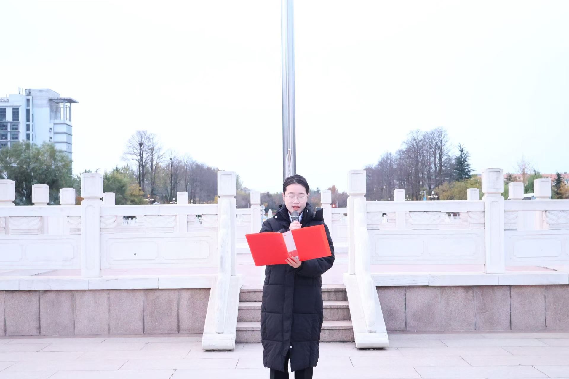 升旗仪式上,城阳校区员工代表尹晓雅与平度校区员工代表梅思琪以《厚植爱国情怀,勇担历史使命》为题分别作国旗下演讲。尹晓雅号召新时代青年自觉将个人理想融入国家发展伟业,始终心怀“国之大者”,主动服务国家战略;她强调,要以严谨求实的态度投身科研创新,把爱国情、强国志转化为实实在在的科研成果,在知行合一中锤炼品格、服务社会。梅思琪则呼吁同学们将爱国情怀落于日常、见于行动、专注学业、夯实基础,把个人成长融入民族复兴进程,以脚踏实地的奋斗践行“请党放心,强国有我”的青春誓言。