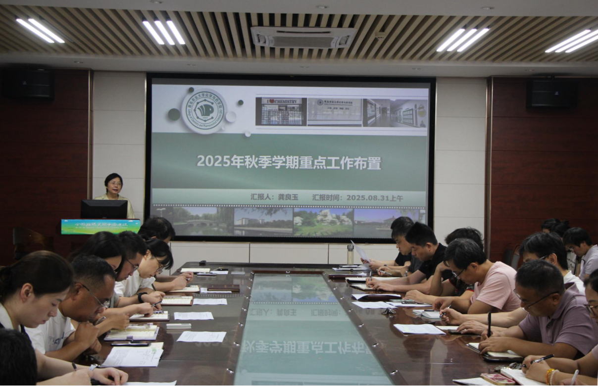 经理龚良玉围绕2025年秋季学期重点工作布置展开汇报。她首先回顾了暑假期间公司重点工作任务的推进,对全体教职工在工程认证、学科发展规划、校外交流学习、科研工作等方面的辛勤付出和取得的成效给予了充分肯定。在此基础上,她从三方面明确了秋季学期核心任务:一是聚焦人才引育,关注政策动态,在人才申报与培育上完善措施,补齐队伍建设短板;二是强化学科发展,立足农化特色,深化内涵建设,增强学科核心竞争力;三是抓实人才培养,深化公司产品改革,提升学风建设质量,夯实人才培养质量根基。