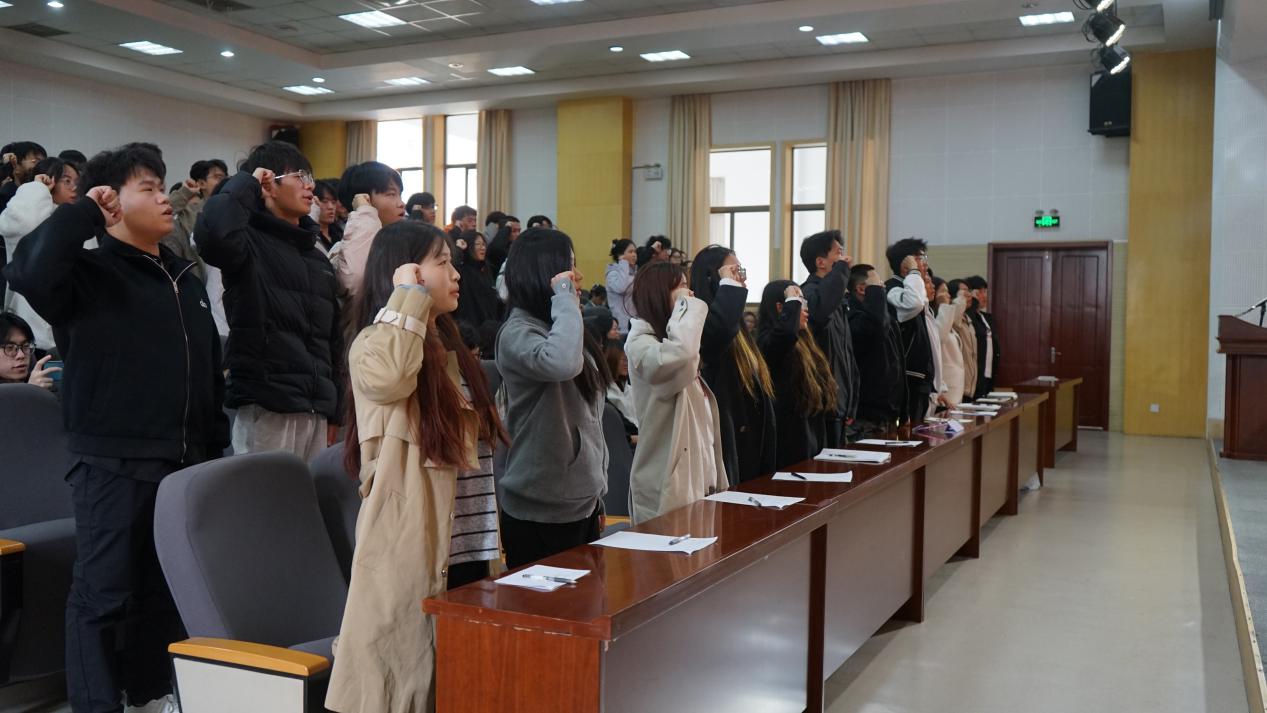 大会在庄严的国歌声中拉开序幕。2024届员工会执行主席郑稳超作工作总结,全面回顾过去一年在思想建设、学风建设、文化活动、社会实践等领域的成果与经验。公司正科级辅导员江守林宣读2025届员工会及员工发展服务中心主要员工干部名单。2025届员工会执行主席张开岩作表态发言,并带领全体2025届成员进行宣誓,承诺将恪尽职守、担当尽责,展现员工干部良好风貌。