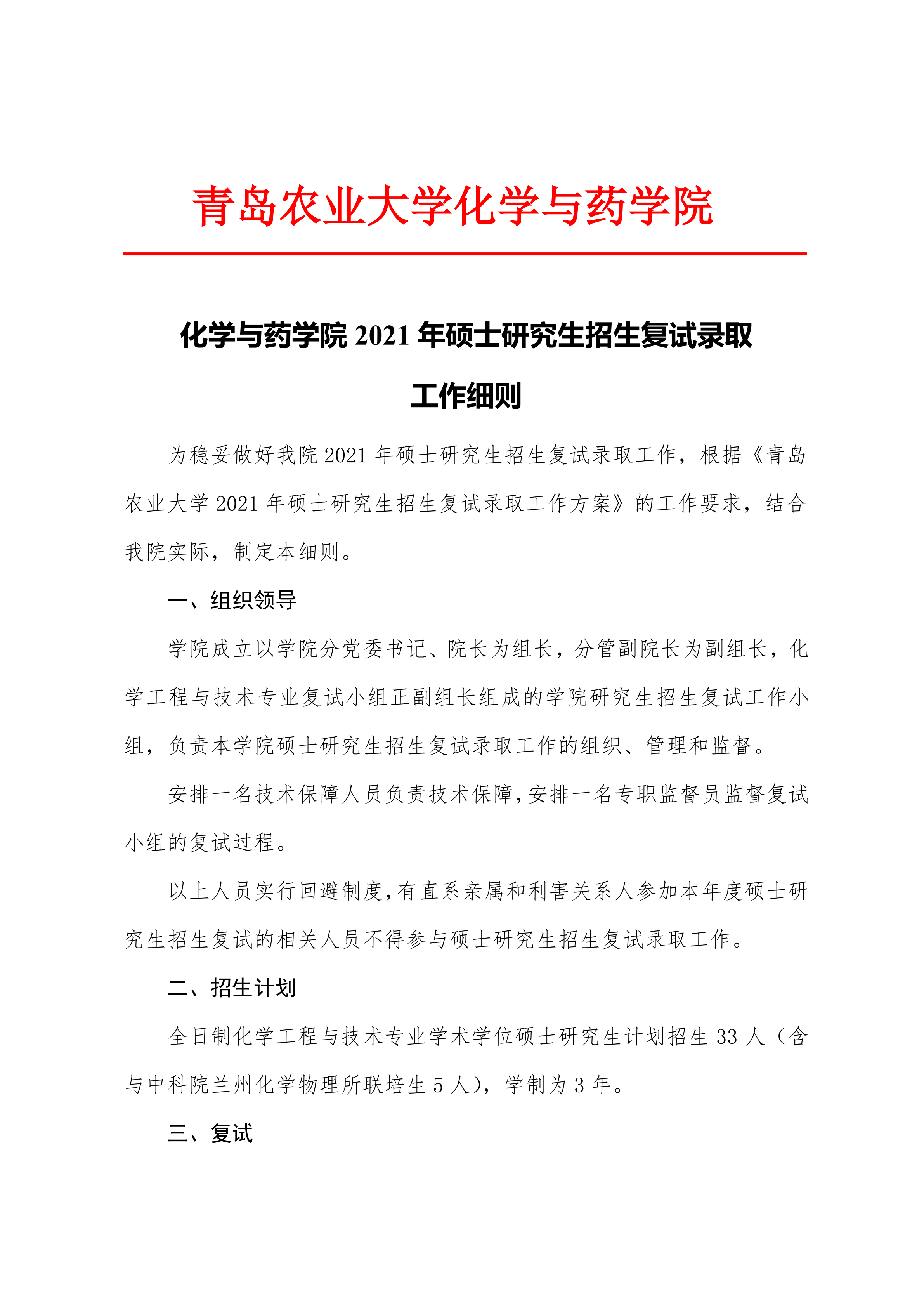 2021 年硕士研究生招生复试录取工作细则