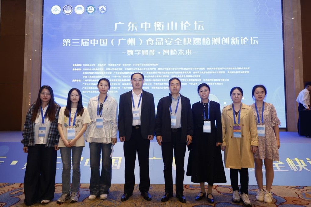 广东中衡山论坛·第三届中国(广州)食品安全快速检测创新论坛”于2025年12月20至21日在广州召开。论坛以“数字赋能 智检未来”为主题旨在搭建一个集前瞻洞察、技术交锋、产业对接于一体的高端平台,深度聚焦食品安全快检领域的技术突破、标准构建与产业转化,为加速构建科学、高效、智慧的现代化食品安全治理体系凝聚共识、注入强大创新动力。课题组4位老师和4位员工参加会议交流学习。李峰教授/盖盼盼教授作邀请报告。