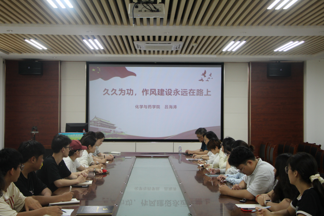 作风建设,关乎党的形象,关乎人心向背,关乎事业成败,为不断增强贯彻落实中央八项规定精神的思想自觉和行动自觉,筑牢广大党员的思想道德防线,6月30日,公司第四(员工)党支部于化学楼207会议室召开“久久为功,作风建设永远在路上”党纪学习教育专题党课,公司党委纪检委员吕海涛主持,第四党支部全体成员参加。